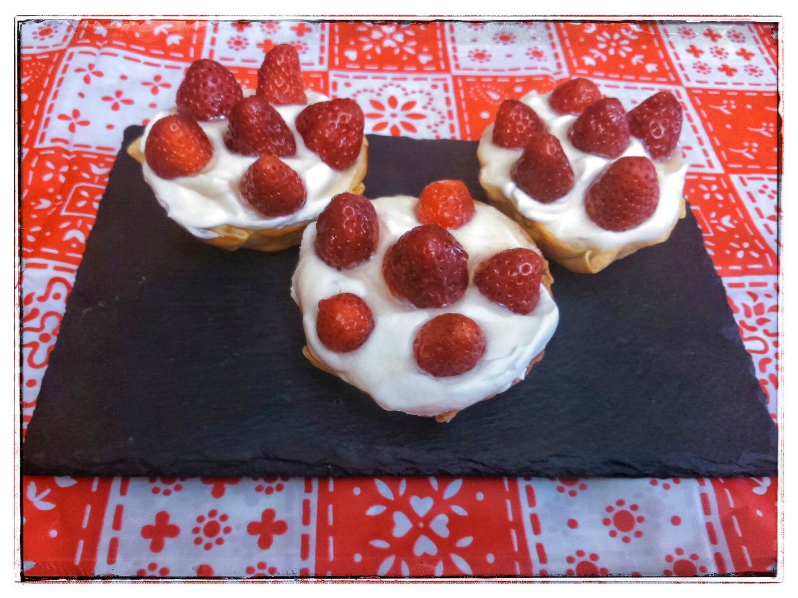 Ahora vamos lavando las fresas y cortando los rabitos , y empezamos a montar las cestitas , en otra manga pastelera ponemos el chocolate en crema y vamos llenando el fondo de cada cesta con un poco de chocolate , a continuación llenamos con la nata y colocamos las fresas , y ya tenemos listo este postre tan bueno , que con el contraste de la nata y el chocolate le darán a las fresas un sabor maravilloso , yo os lo recomiendo a la hora de una comida con la familia o un cumpleaños .