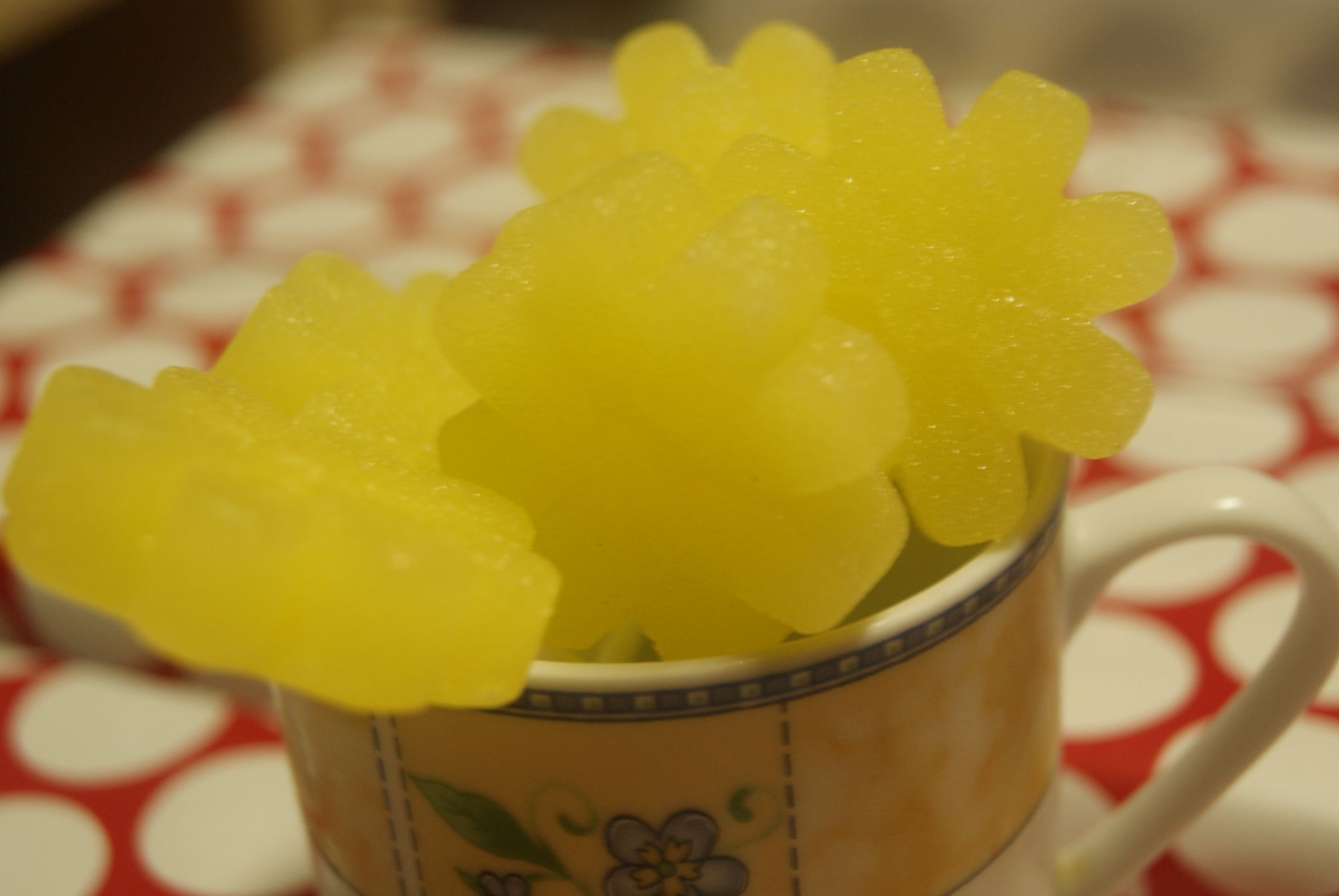 Cuando nuestro caramelo adquiera un color rubio, apartamos del fuego y ponemos dos gotitas de colorante amarillo, y removemos bien para que el color quede homogéneo. Seguidamente, añadimos la cucharadita de esencia de limón y removemos para que nuestro caramelo se impregne bien de sabor.
