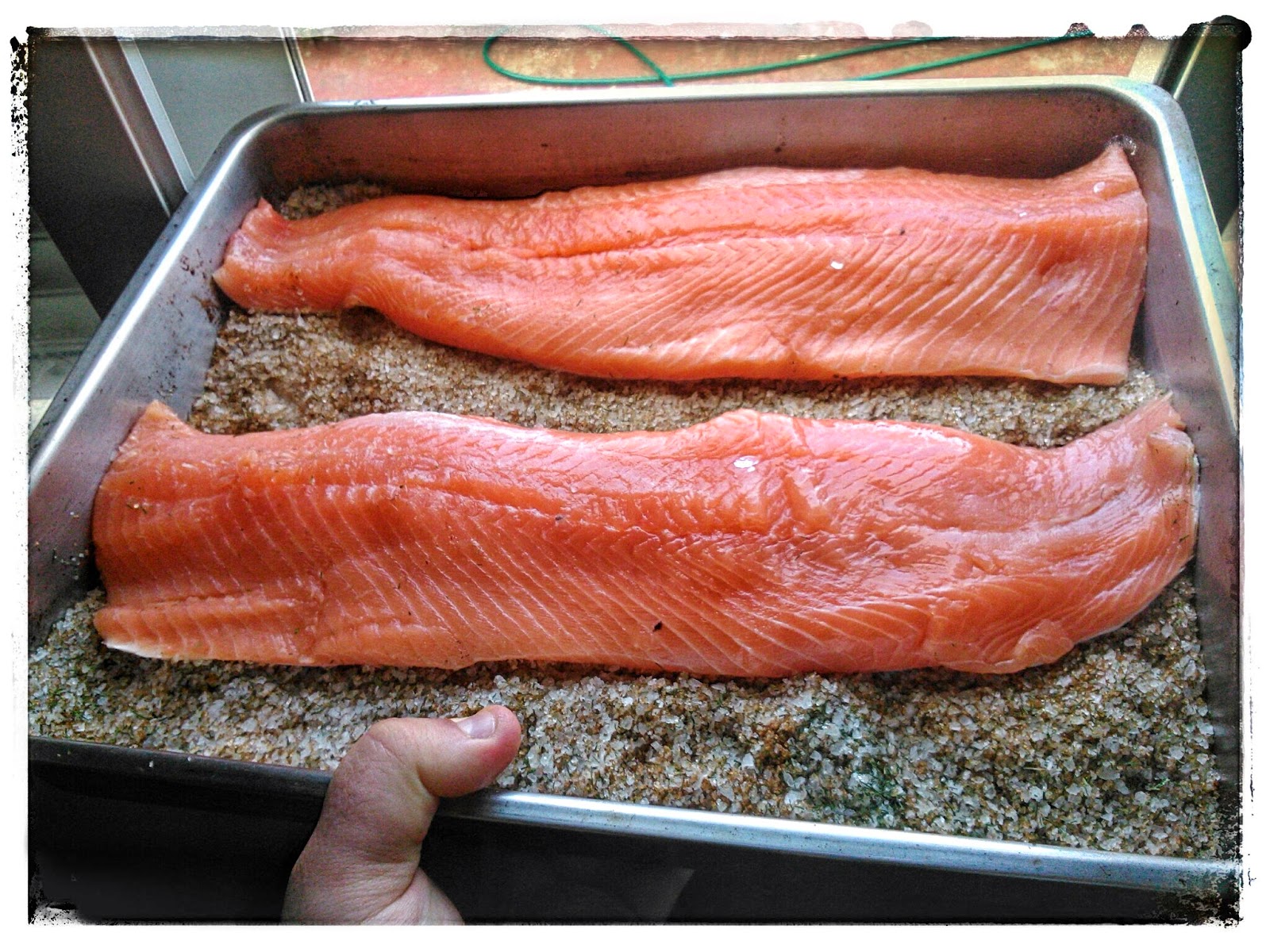 Pasadas las 24 horas sacamos el salmón y retiramos todo, hasta que nos quedemos con él, ahora lo lavamos y lo secamos muy bien.