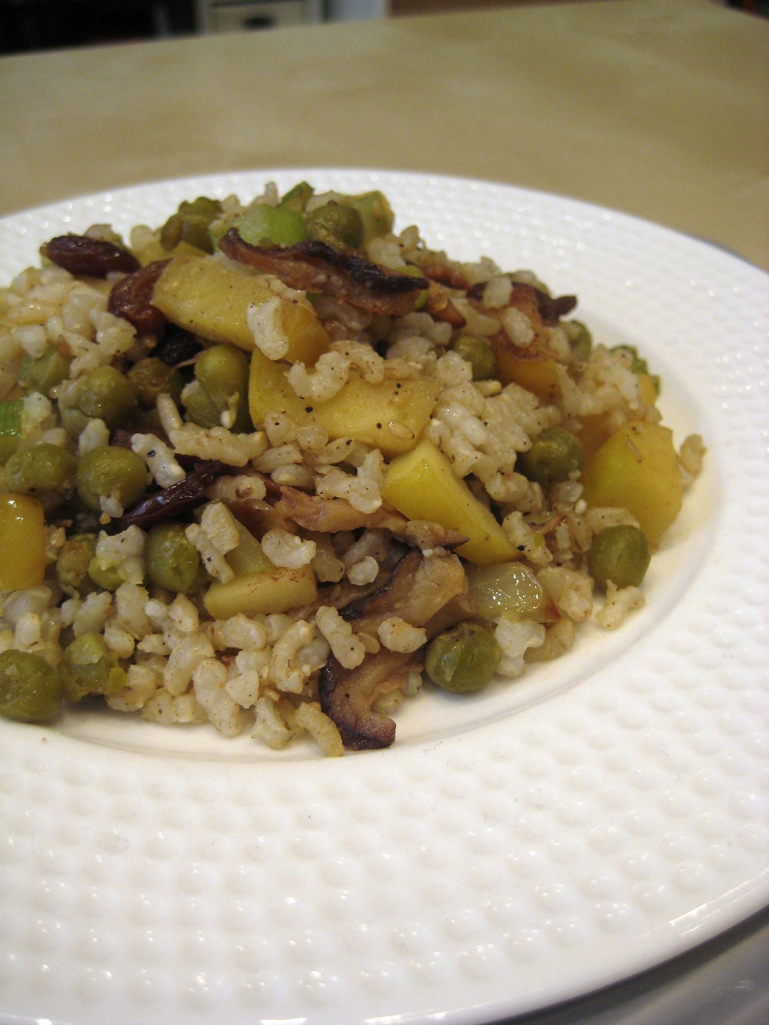 Arroz especiado con setas y manzana