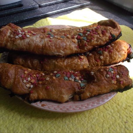 Dividimos mentalmente en dos (longitudinalmente) cada porción de hojaldre.