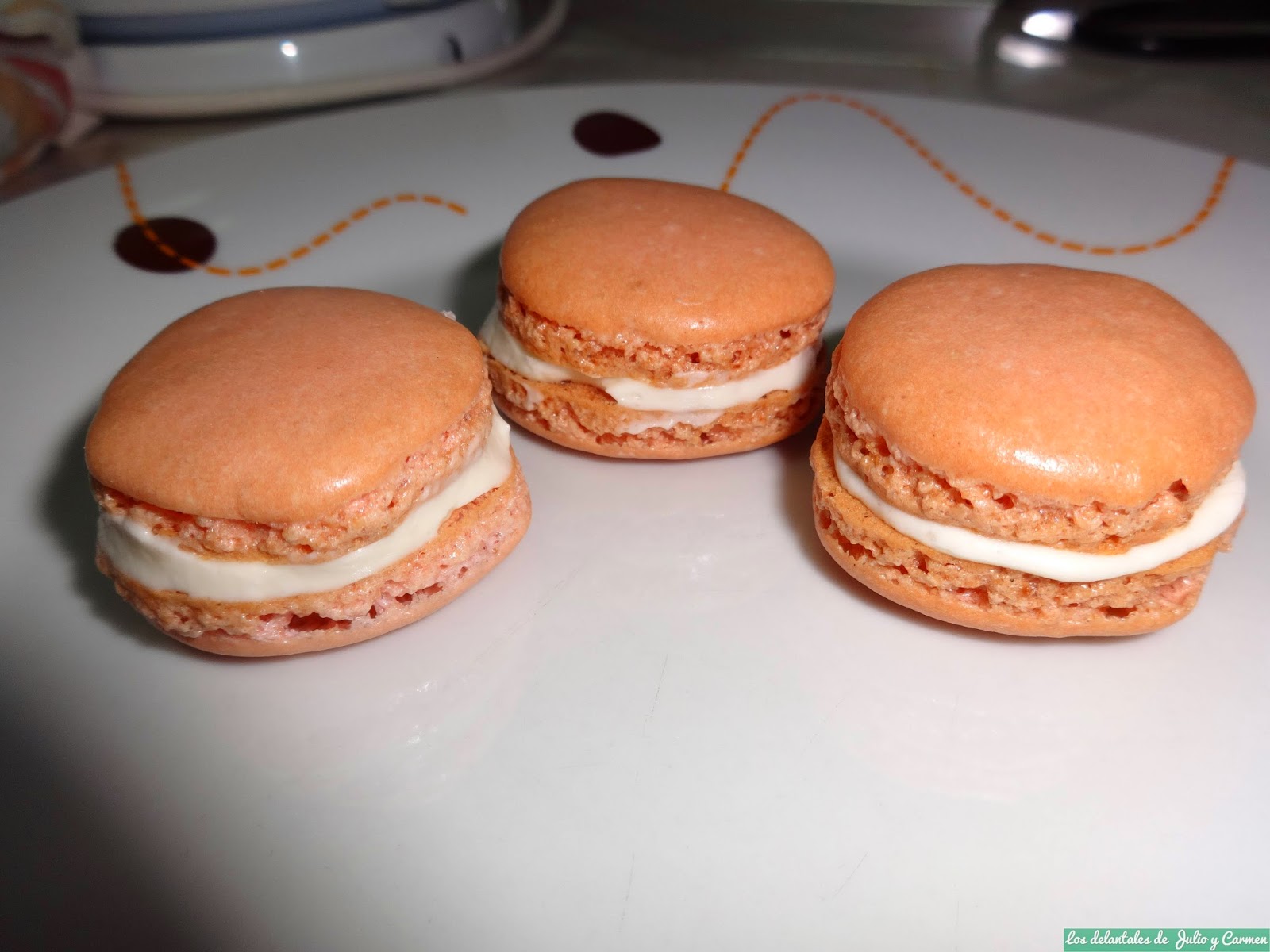 Ahora prepararemos el relleno que mas nos guste (mermelada, crema, frosting, chocolate... en vuestras manos queda probar y hacer el que mas os guste), y con una manga pastelera rellenamos una parte y cerramos la galleta con otra de las mitades.