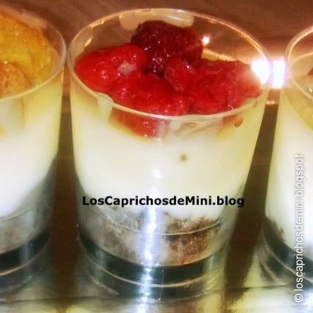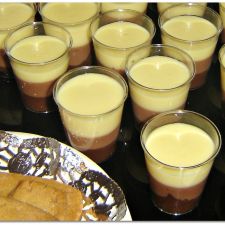 Vasitos: trituramos con los dedos la masa quebrada de chocolate y vamos poniendo como base en los vasitos encima vertimos un poco de crema de mascarpone, dejar enfriar en la nevera. Decorar antes de servir.