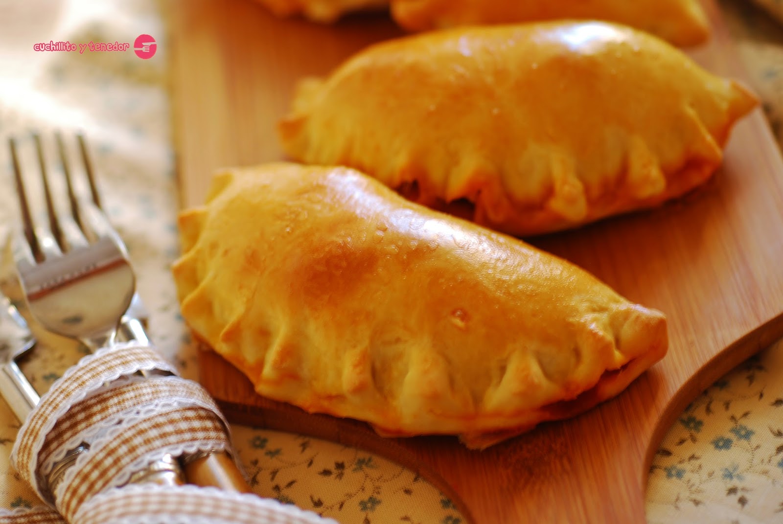Estiramos la masa de la empanada y le damos la forma deseada , ponemos un poco de relleno en el centro de las obleas y pintamos el borde con agua y las doblamos a la mitad formando una media luna aplastamos los bordes con un tenedor para sellar.