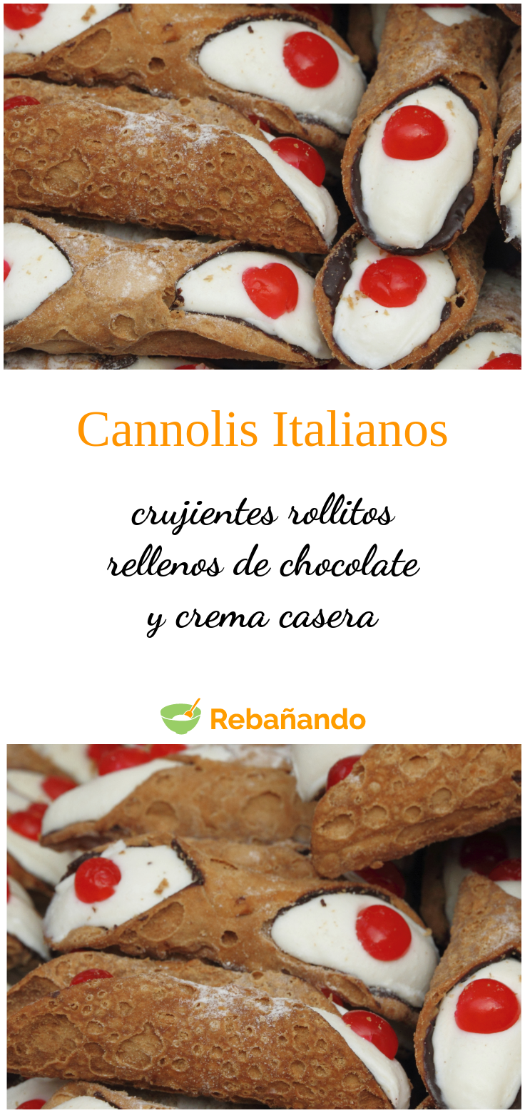 Una vez enfriados, rellenamos cada uno con la crema de ricotta y colocamos una cereza en cada extremo. Terminamos espolvoreando cada cannoli con un poco de azúcar glass.