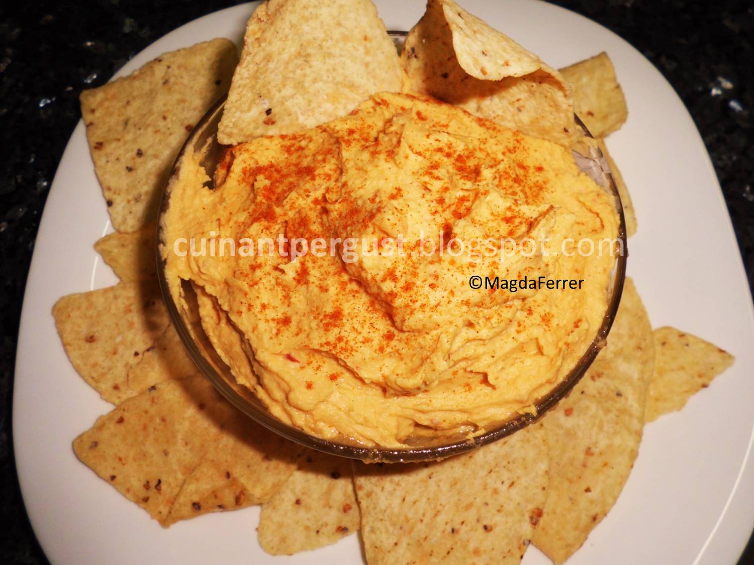 Introducir en la picadora o en el procesador de alimentos el tahini, el boniato troceado, los garbanzos escurridos, la sal, el chile, el pimentón, el zumo de limón y un chorro de aceite de oliva. Triturar e ir comprobando el grado de sal y de picante. Ha de quedar una pasta suave pero consistente. Si queda demasiado espesa añadir más aceite y/o zumo de limón, dependiendo del gusto de cada cual. Depositar en un cuenco o bol, acompañado de tortillas de maíz. Servir.
