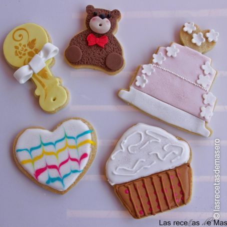 Galletas de mantequilla decoradas con glasa real y fondant