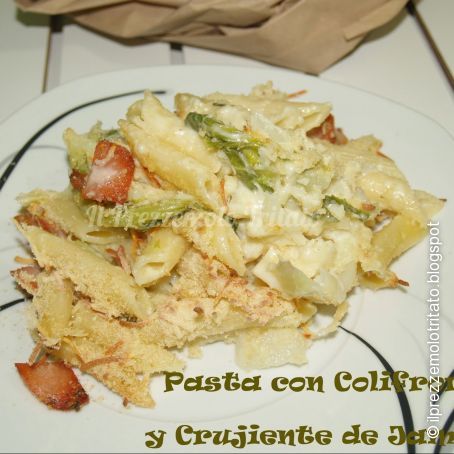Macarrones con coliflor y crujiente de jamón