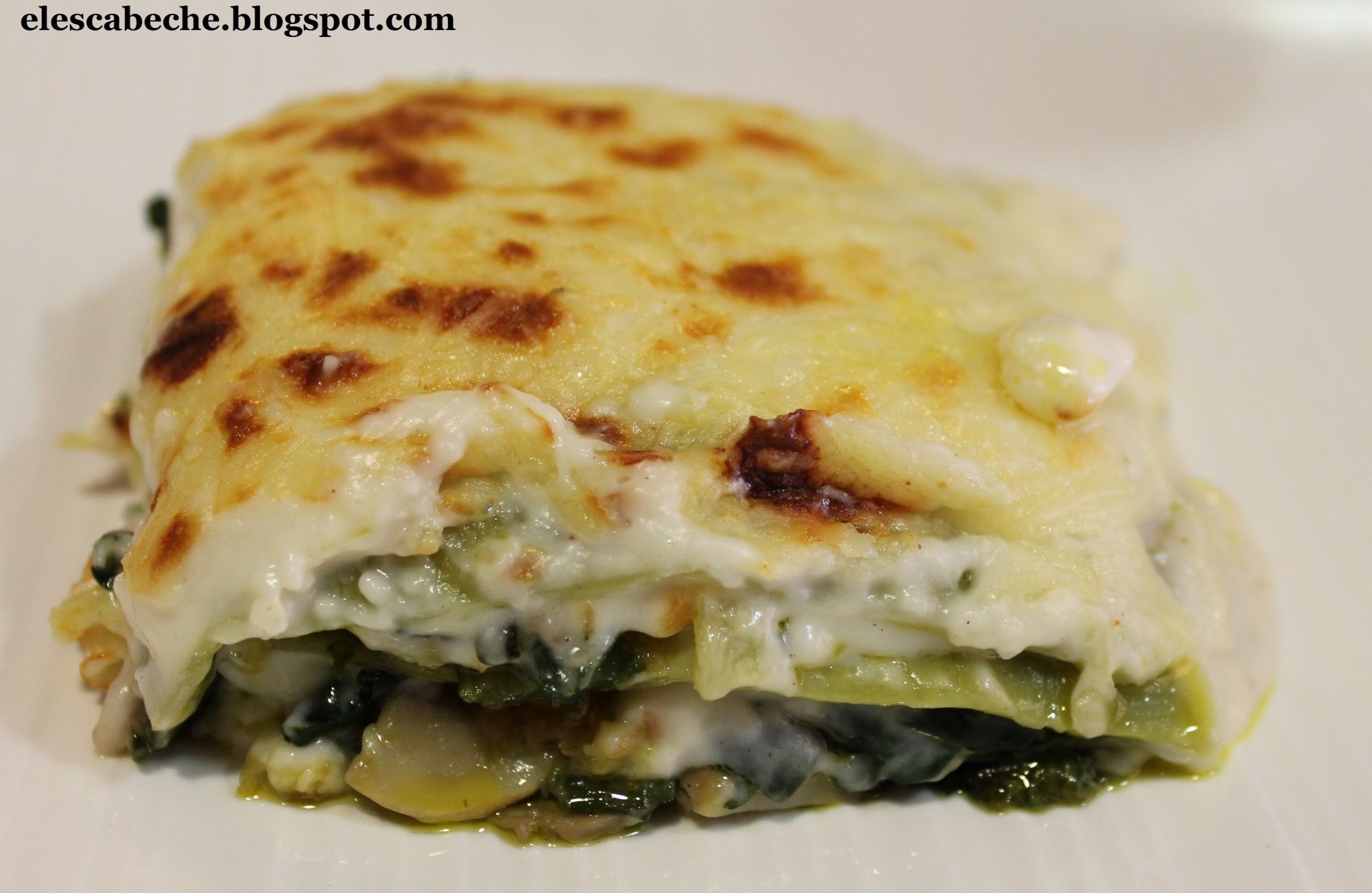 Se prepara la pasta de lasaña verde, siguiendo las instrucciones del envase. A continuación, preparamos la besamel con dos cucharadas soperas de harina, leche, sal y un poco de nuez moscada. Seguidamente, en una fuente untada con mantequilla se colocan las láminas de lasaña, la mezcla de verduras y después la besamel.