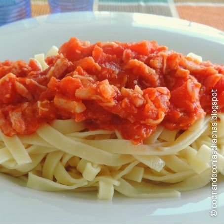- Un truco para que la salsa quede genial es añadirle una cucharadita del agua de cocción.