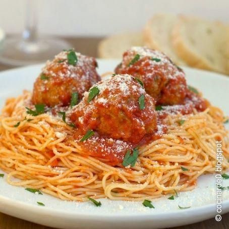 Desglasar sarten con vino y meter tomate, albahaca, pimienta y sal; y aceitunas. Dejarla unos 5min para que reduzca. Para las albondigas: