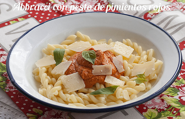 Abracci con pesto de pimientos rojos
