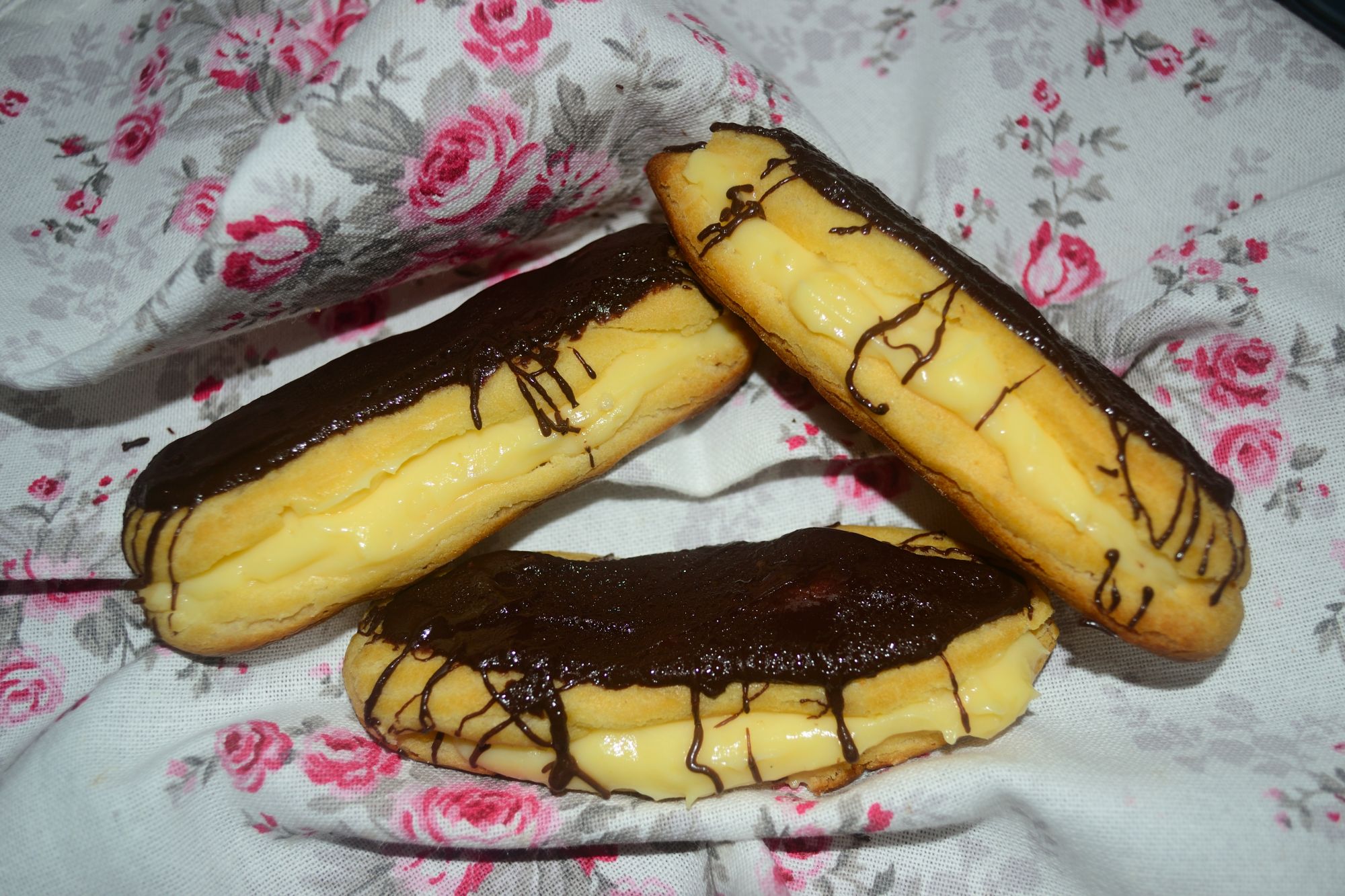 Consisten en una masa dulce cocinada y horneada ("pâte à choux", la misma de los profiteroles) rellena de crema pastelera y cubierta de glaseado. Para darles un toque más ligero, les he puesto una crema de vainilla, en lugar de una crema pastelera al uso, que creo que resultaría más pesada. Esta crema, sumada a la masa, también bastante ligera, blandita y esponjosa, hace unos dulces muy agradables de comer, al contrario de lo que la foto pueda insinuar. Me encanta el toque salado de la masa en combinación con el dulzor de la crema. Es un bocado muy bueno y me trae muy buenos recuerdos.