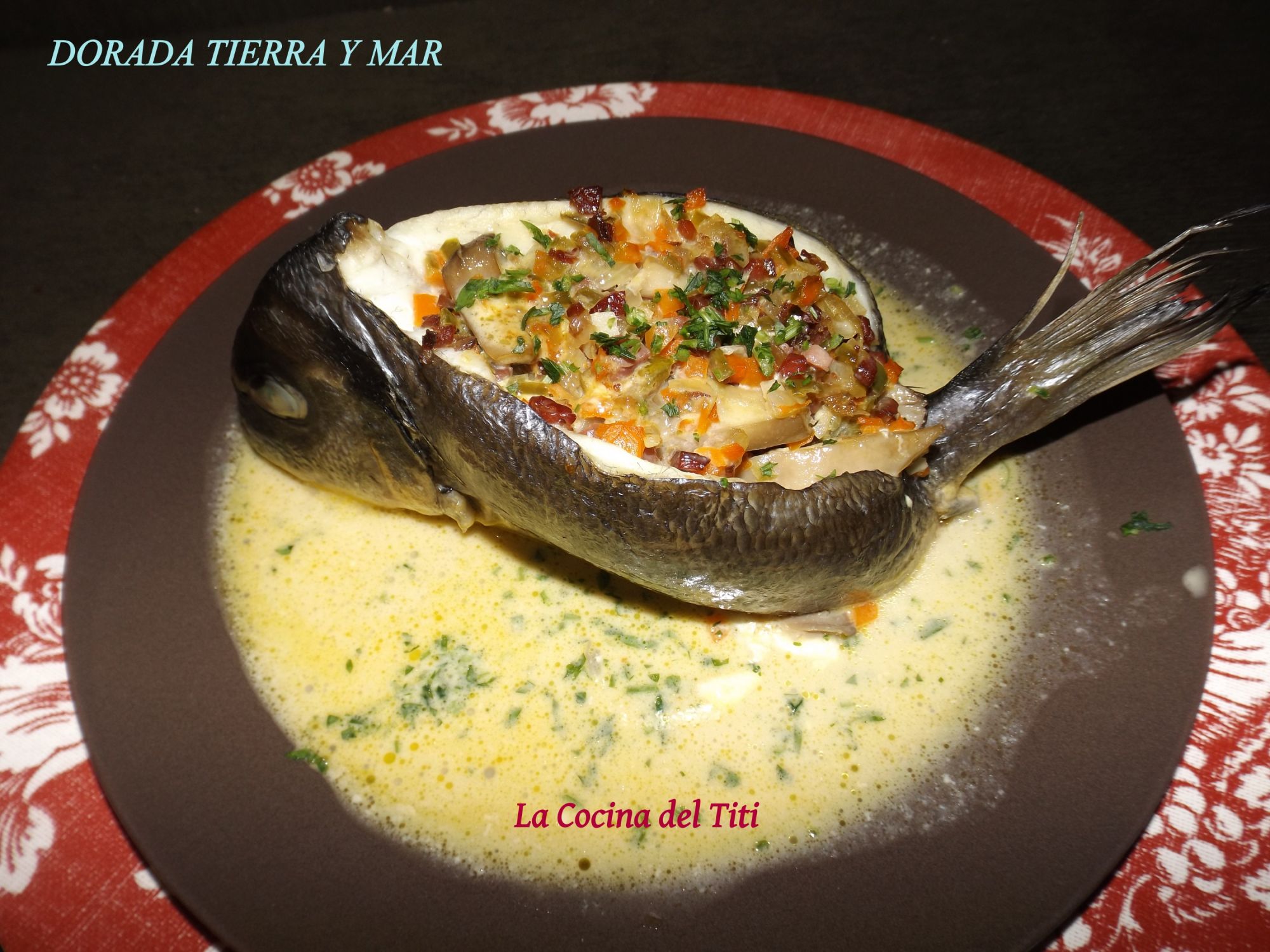 añadimos el jamon y las setas dejamos sudar las setas y posteriormente el vino añadimos el caldo o fumet dejamos unos diez minutos reduciendo y terminamos con la nata una vez halla espesado la nata, rellenamos las doradas y metemos al horno de 25 a 30 minutos aproximadamente 180°