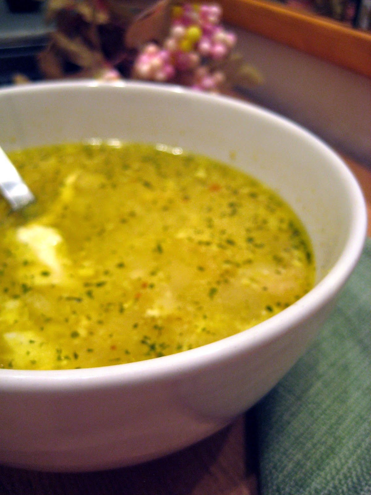 Cascamos los huevos y antes de que caigan a la sopa los rompemos con el dedo para que no queden enteros, así se formarán hilillos por todo el caldo.