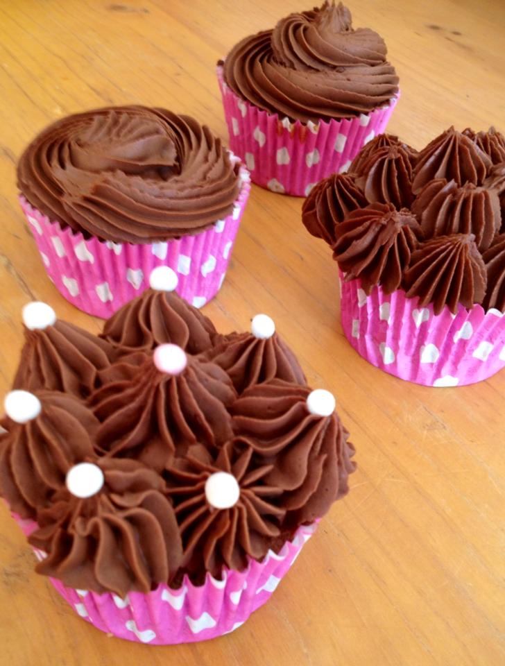 Poner el ganache en la manga pastelera con la boquilla que mas os guste y cubrir los cupcakes con la forma que mas os guste
