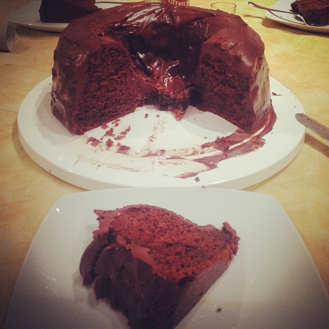 Para la cobertura, fundir el chocolate y añadir la nata. Cuando el bizcocho esté todavía caliente, cubrir con el chocolate. Se puede también regar el bizcocho con pacharán o cognac antes de cubrir.