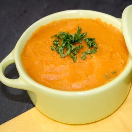 Aplastamos el boniato y la patata con un tenedor a fuego lento y después lo pasamos por la batidora para que quede homogéneo.
