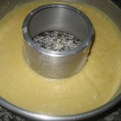 Untamos un molde con un poco de mantequilla y lo espolvoreamos con harina. Echamos en él la mezcla y lo metemos en el horno, previamente calentado a 180°C con calor arriba y abajo a una altura media.