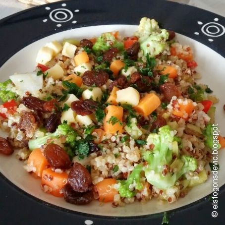 Cuando la quinoa esté lista, la añadimos a la sartén con las verduras.