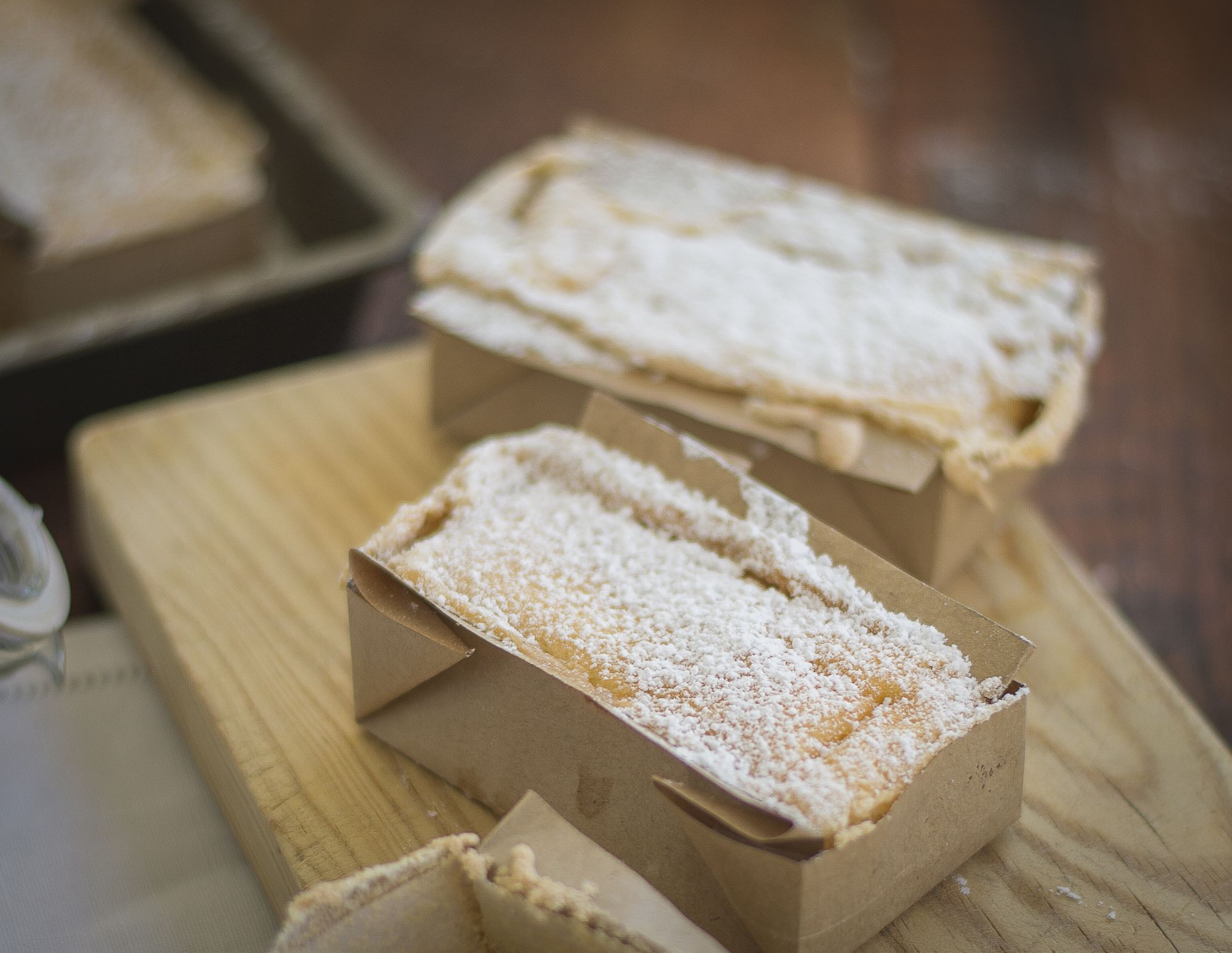 Yo he hecho los moldes a mano, se pueden usar los de los Sobaos o hacerlo en un molde grande y cortar en porciones. Se puede sustituir la fécula de patata por harina de maiz-La ralladura es opcional.