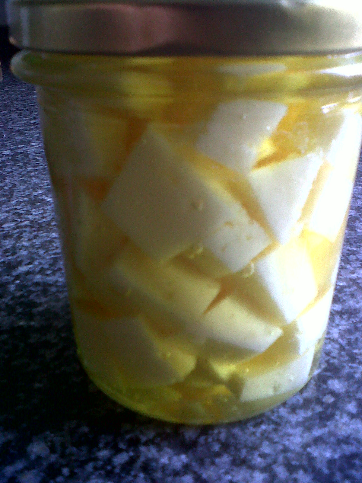 Cubrir con el aceite de oliva ( hasta el borde) y añadir las especias que se quieran yo no le puse porque era para alguien al que no le van.