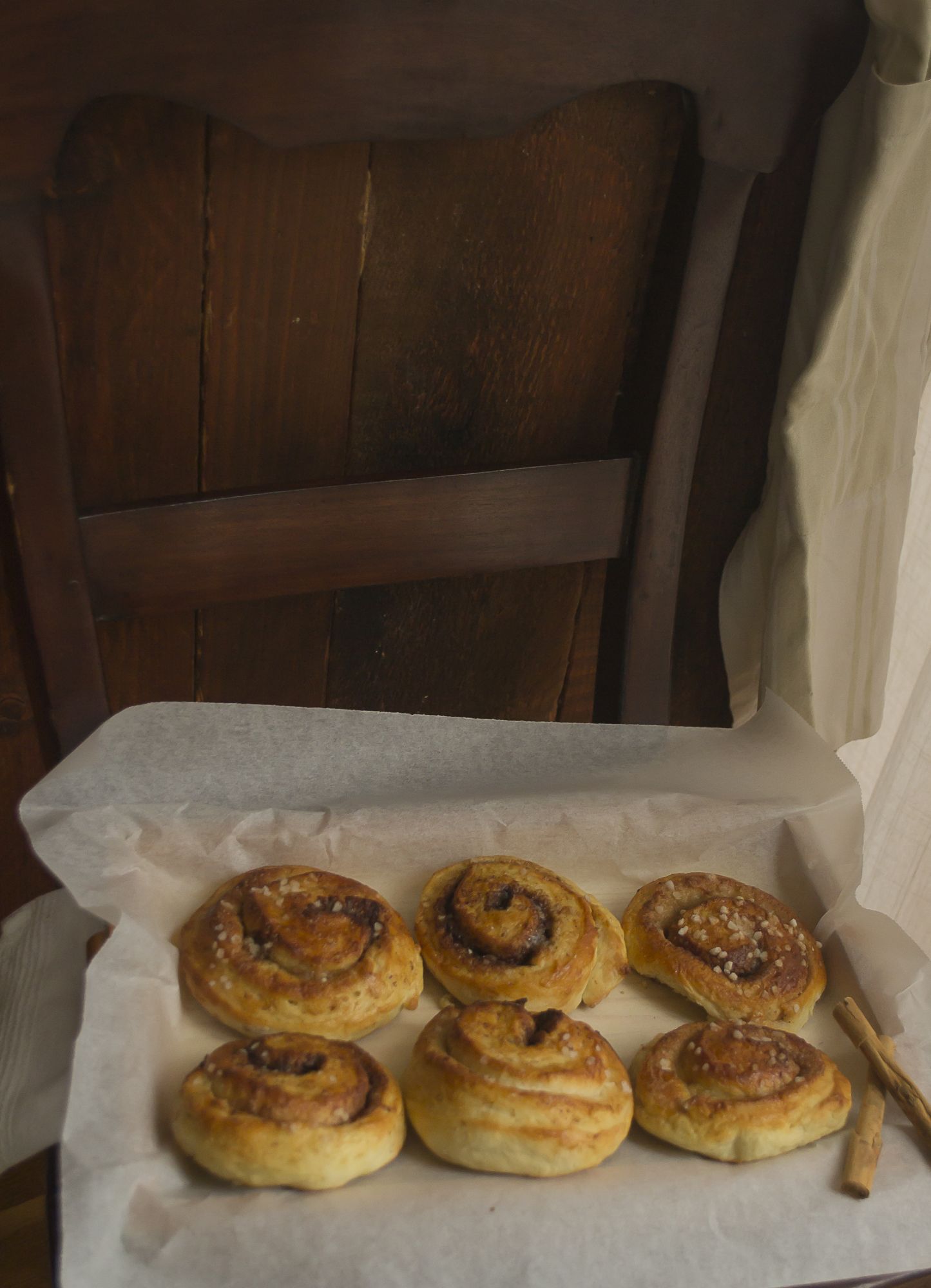 Primero se desmenuza la levadura en la leche templada hasta que se disuelva, se añade gran parte de la harina, la mantequilla a dados, el azúcar, los huevos, la sal y el cardamomo, Se trabaja la masa hasta que sea homogénea y manejable, si incorpora más harina si es necesario.