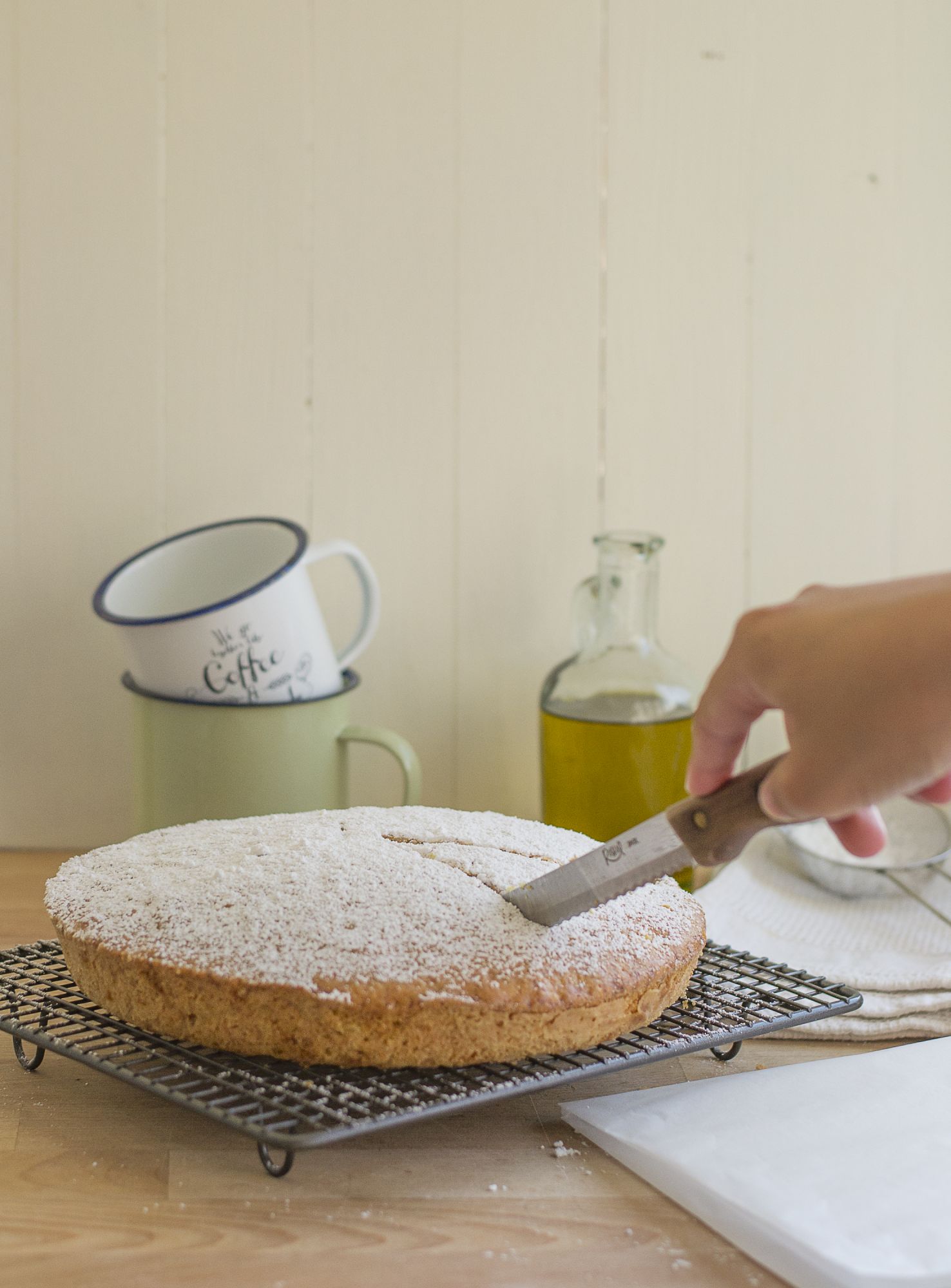 Bizcocho hecho con limón, naranja, almendras y aceite de oliva