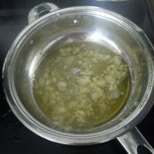 Mientras tenemos los espirales cociéndose, picamos la cebolla y la ponemos a sofreír en una sartén con aceite de oliva.