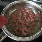 Una vez que este bien doradita la cebolla, le añadimos la carne molida.