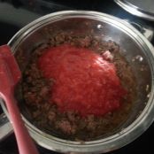 Revolvemos bien todo para que el tomate quede bien mezclado con la carne y la cebolla. Volvemos a salpimentar un poco y le añadimos orégano al gusto (yo le pongo mucho). Removemos y le incorporamos la pasta que tenemos reservada. Mezclamos todo de nuevo para que la pasta quede bien incorporada a la salsa de tomate con carne molida.