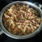 Lo primero que tenemos que hacer es poner la pasta a cocer, para eso cogemos una cacerola añadimos dos litros de agua, 12 gr de sal, orégano y un chorreón de aceite. La ponemos al fuego y cuando el agua empiece a hervir añadimos los 500 gr de pasta, removemos con una cuchara de madera para que no se peguen y los dejamos unos 12 min aprox. y retiramos del fuego. Lo que yo hago nada más retirarlos del fuego es poner la pasta a escurrir y abrir el grifo de agua fría para bajarle la temperatura a la pasta.