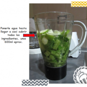 Ahora todos los ingredientes los ponemos en una batidora de vaso y le añades agua, hasta casi cubrir los ingredientes, que son aproximadamente unos 600 ml.