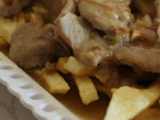 Cortamos la cebolla en tiritas finas y la pochamos a fuego lento en el aceite cuando estén casi echamos los ajos cortados un poco;Una vez empiecen a dorarse añadimos los filetes de lomo y troceados en dos partes cada filete de lomo . Sellamos la carne e incorporamos la pastilla de caldo desmenuzada y el whisky. Dejamos uno 3 minutos¡ en la candela para que se evapore el alcohol y añadimos el agua y dejaremos unos minutos para que reduzca un poco la salsa y después ya que llegados a este punto pasaremos todo el con tenido de la olla a la sartén donde se pocho la cebolla con los ajos y en solo dos minutos conseguiremos que se liguen los sabores y reduzca un poco la salsa.Y listos servir si quereis con patatas fritas.
