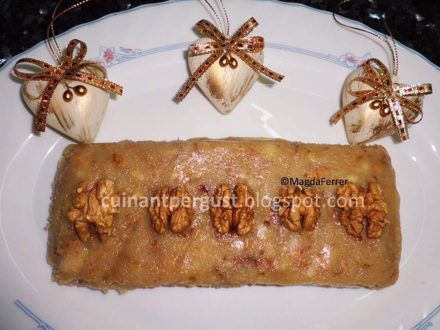 - 50 gr. de nueces troceadas (reservar 4 ó 5 enteras para decorar)