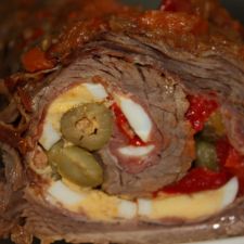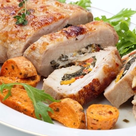 Carne de cerdo rellena de espinacas, pimientos y feta
