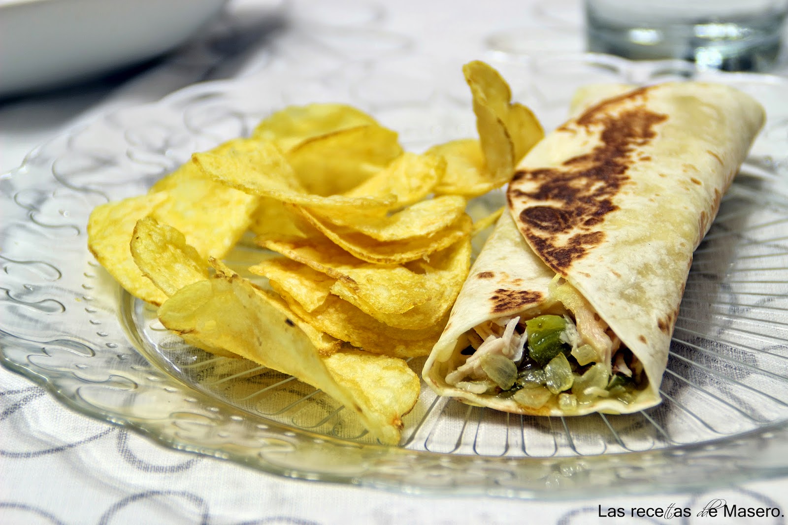 En este caso hemos hecho una flauta, pero con la tortilla de maíz bien podríais hacer una quesadilla como esta (ver receta aquí). Para el relleno hemos hecho un sofrito muy sencillo, con pechuga de pollo en conserva de Casa Matachín (en aceite), que es muy suave y hace buen contraste con el pimiento. Podéis agregarle tomate frito, eso es a gusto del consumidor.