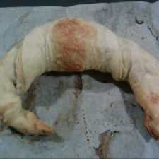 Batimos la yema con la leche y pintamos cada croissant justo antes de hornear.