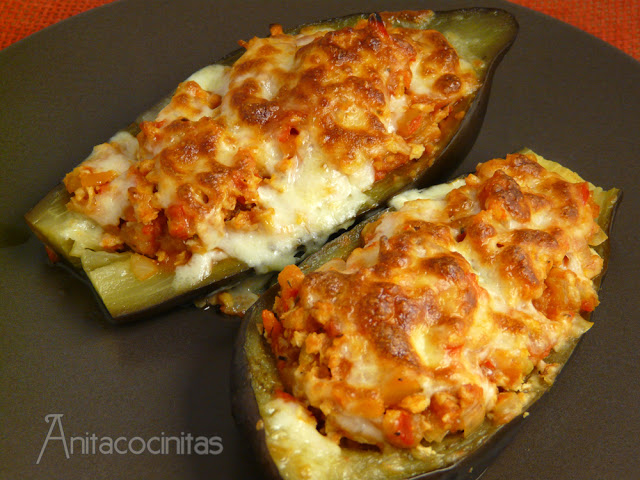Amb la barreja, omplir les tapes de les albergínies i colocar-les a una plata per posar al forn.