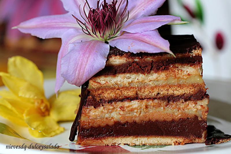 TARTA: Utilizar para esta tarta un molde cuadrado o rectangular, y cubrir el fondo y las paredes con papel film para facilitar el desmoldado. Echar en un recipiente la leche necesaria y templarla al microondas. Añadir un chorro de ron e ir remojando las galletas y cubriendo el fondo del molde. Echar sobre la capa de galletas, una capa de chocolate y cubrir con otra capa de galletas remojadas en leche. Cubrir la segunda capa de galletas con una capa de flan y continuar alternando capas de galletas y la diferentes cremas, hasta agotar las cremas.