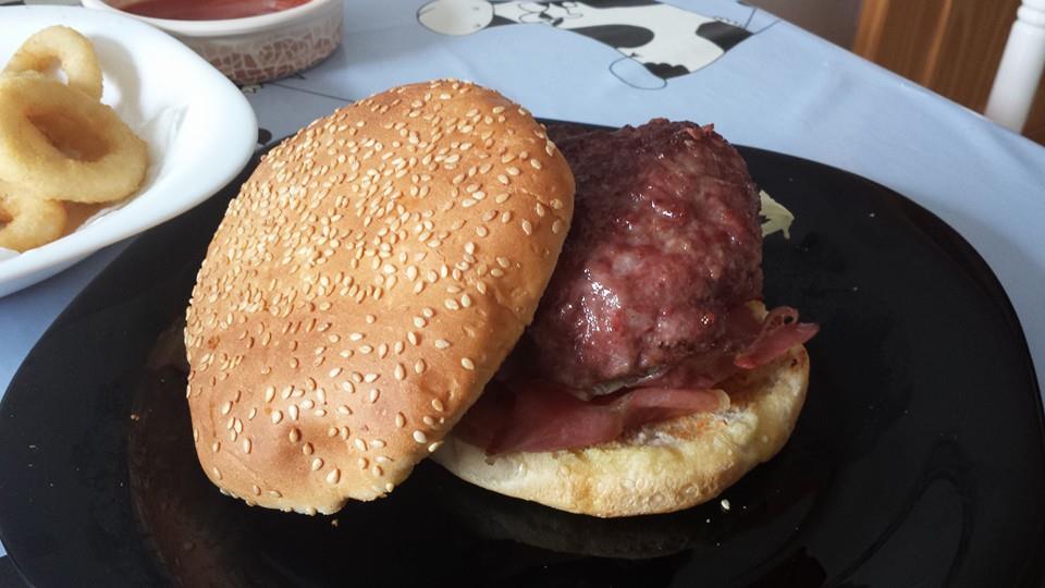 sobre el centro de una de las hamburguesas ponemos una gran cucharada de Cebolla Hero y cubrimos con la otra hamburguesa. Cerramos bien por los bordes para que la cebolla quede entre ambas. si nos queda muy gorda aplastar un poco sin romper.