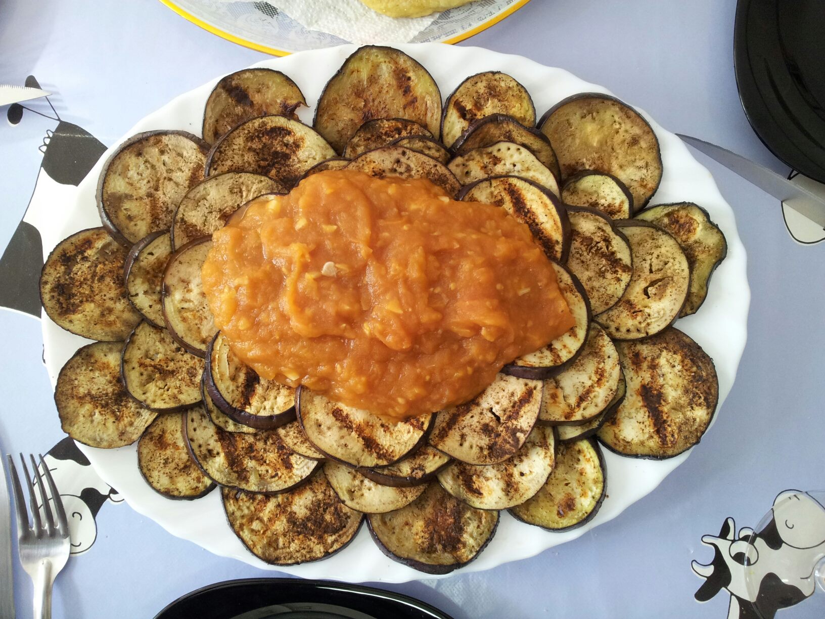 pasamos por la plancha tostándolas y servimos en una bandeja con la mermelada hero maridaje de tomate por encima