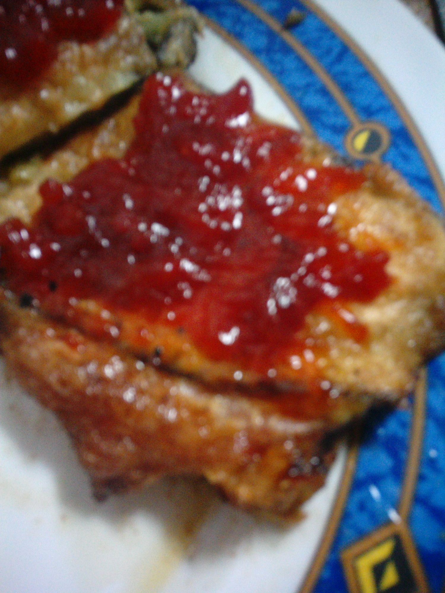 Berenjena cortada en láminas y vamos intercalando capas de berenjena con otra de tomate y otra de rulo de queso de cabra , cubrimos con otra capa de berenjena y terminamos cubriendo con mermelada de pimiento endulzado