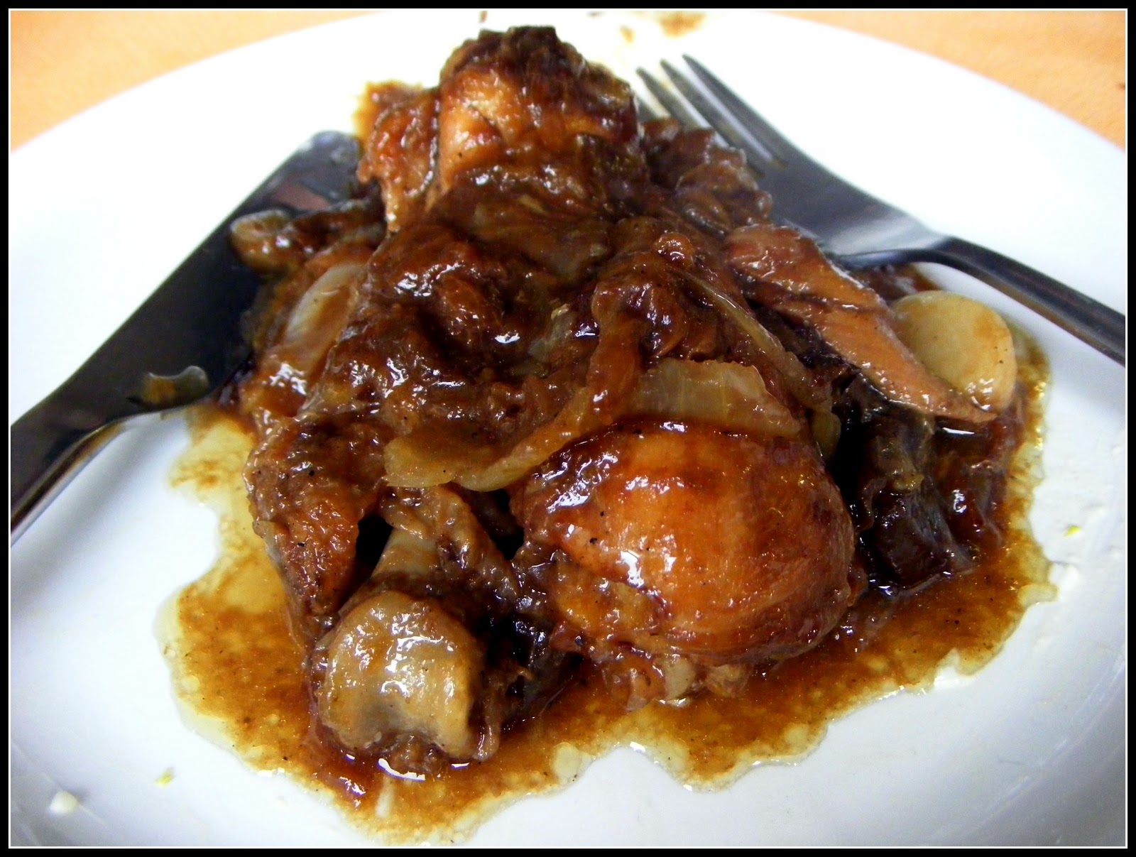 Afegir la ceba, pastanga i alls juntament amb un raig de vermut o conyac. Deixar evaporar el vermut o conyac i baixar el foc.