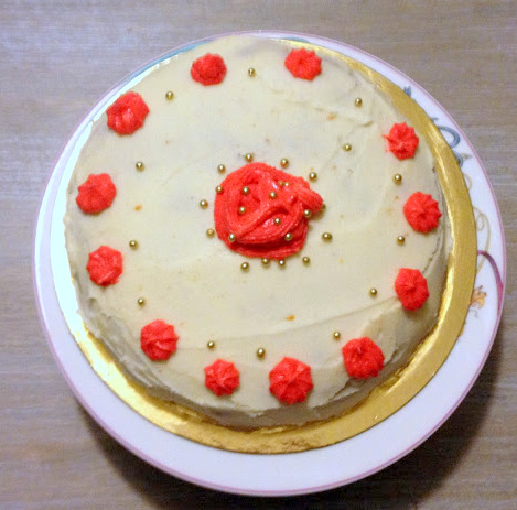 Para montar el pastel ya frío lo cortamos por la mitad y ponemos un capa fina del frosting de queso tapar y cubrir totalmente por fuera el bizcocho con una capa gruesa de frosting de queso, decorar con pequeñas zanahorias hechas con pasta de almendra o con fondant.