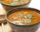 Colocar el pan tostado en una sopera o cazo que pueda ir al horno (o en boles de sopa individuales), verter a sopa sobre el pan, espolvorear el queso rallado sobre el pan, un poco más de pimienta y gratinar en el horno (posición grill) unos 5 a 10 minutos hasta se forme una costra dorada de queso derretido.