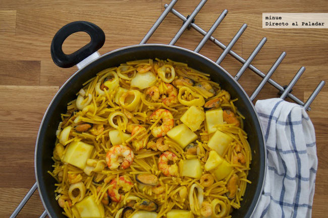 ¿Cuánto fumet echamos para que queden los fideos bien y no tengamos una papilla? Yo cubro los fideos justitos con un cazo y añado más cazos de uno en uno si veo que lo va necesitando. Tened en cuenta que los fideos no chupan como el arroz y con muy poco es suficiente. Dejamos unos minutos y apagamos el fuego para que repose.