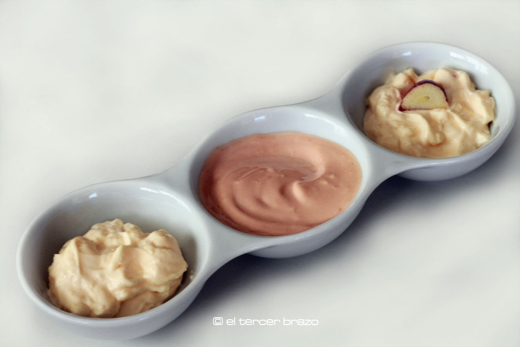 Para el Ali-oli, se le agrega a la mayonesa 1 ajo y se tritura hasta que esté bien incorporado.