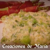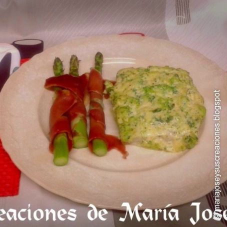 Primero hacemos la salsa. Cocemos el brocoli con un poquito de sal, cuando este cocido y escurrido, lo troceamos y lo ponemos en una sartén. Rehogamos el brocoli con un poquito de aceite, echamos 2 cucharaditas de harina y removemos, echamos medio vaso de leche removemos bien y dejamos cocer un poco asta que espese un poquito. Ponemos el abadejo en una bandeja de horno, echamos encima del abadejo la salsa y lo metemos en el horno, hasta que este echo el abadejo unos 20 minutos a 200° calor arriba y abajo. Cortamos la parte dura de los espárragos y los limpiamos. Cortamos el jamón a la mitad y con cada mitad embolvemos un esparrago lo metemos al horno 10 minutos.