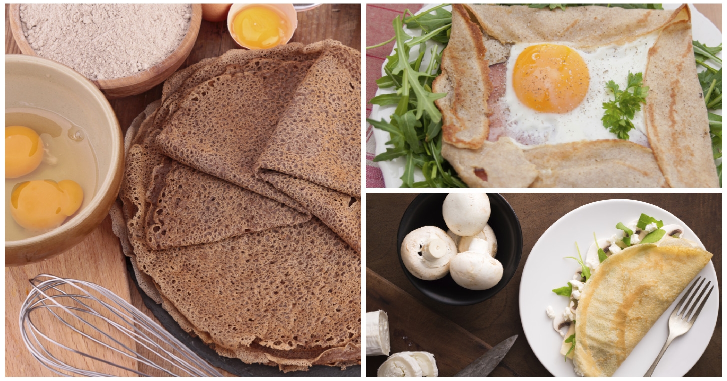 Los ingredientes más habituales para el relleno del crepe son: huevo, jamón york, queso de cabra, bacon y miel.